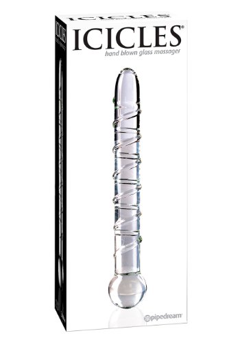 Elegant, upscale, and hand-crafted with amazing attention to detail, this luxurious line of glass massagers will leave you breathless. Each hand-blown Icicle glass wand is sleek, unique, and made to play hard. The hypoallergenic glass is nonporous and body safe, and when cared for properly, is designed to last a lifetime. Run the wand under warm water or place it in the microwave to heat things up. Chill it under cold water or put it in the freezer for a cool sensation. Overall length is 9″ with a girth of 3″.